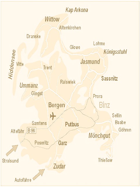 Dies ist die Karte der Insel Rügen. Für mich und viele andere eines der schönsten Erholungsgebiete Deutschlands. Hier wird alles geboten was das Urlauberherz begehrt. Meer und Strände satt. Mein ehemaliger Chef & Freund Friedel ist auf dem Campingplatz in Thiessow seit fast 30 Jahren Dauercamper. Wenn es zeitlich geht verschlägt es mich und meine Frau in regelmäßigen Abständen auch dorthin. Eines steht für uns fest, unseren Lebensabend werden wir auf jeden Fall an der Küste verbringen. Vielleicht klappt es ja auch früher wenn wir im Lotto gewinnen sollten . Unsere Rügenfotos findet Ihr bei Rügen - Pic´s.